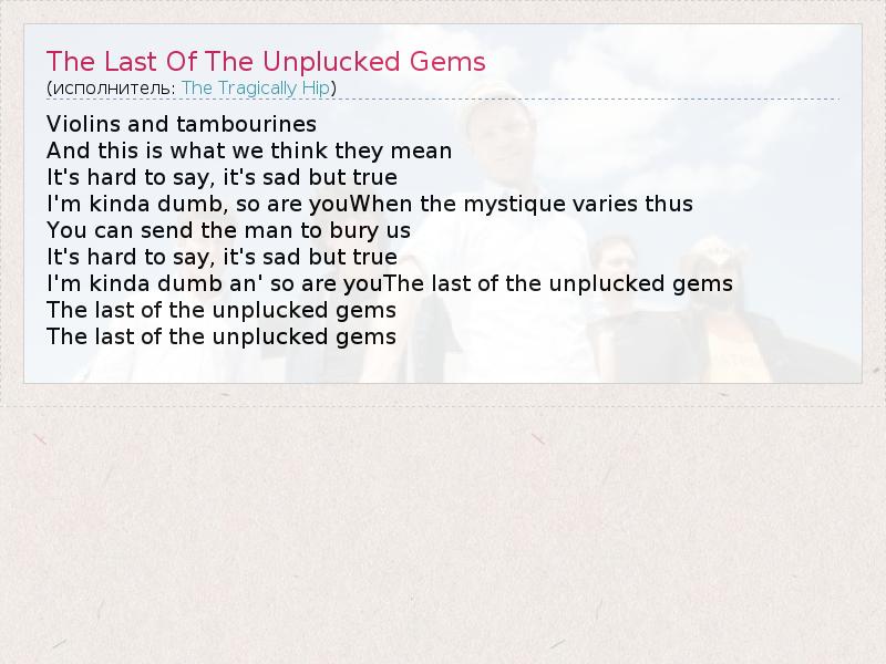 А как ты думаешь, о чем песня "The Last Of The Unplucked Gems" ?