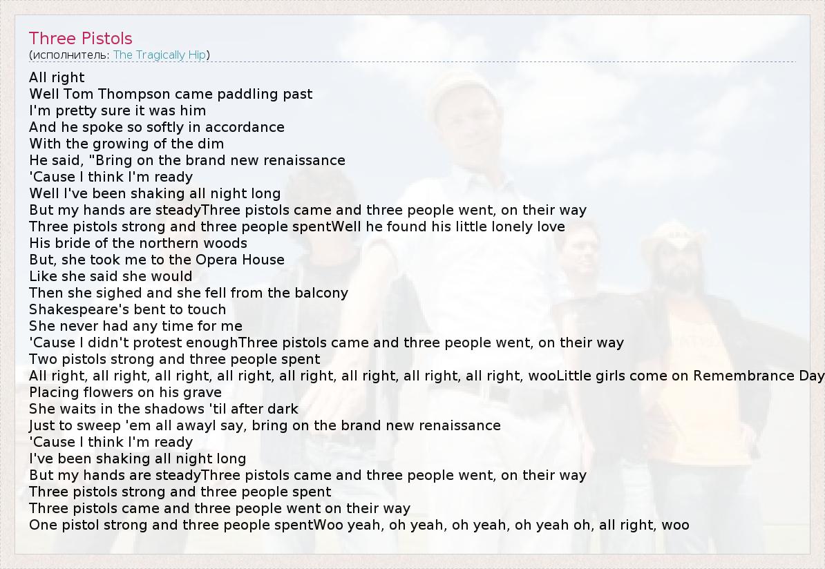 А как ты думаешь, о чем песня "Three Pistols" ?