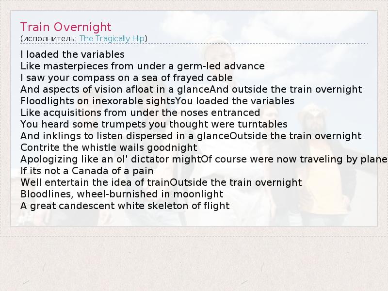 А как ты думаешь, о чем песня "Train Overnight" ?