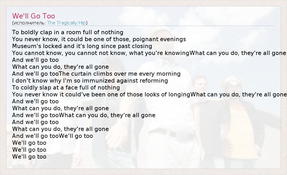 А как ты думаешь, о чем песня "We'll Go Too" ?