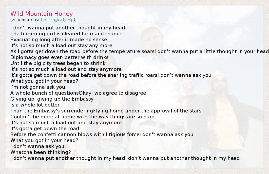 А как ты думаешь, о чем песня "Wild Mountain Honey" ?
