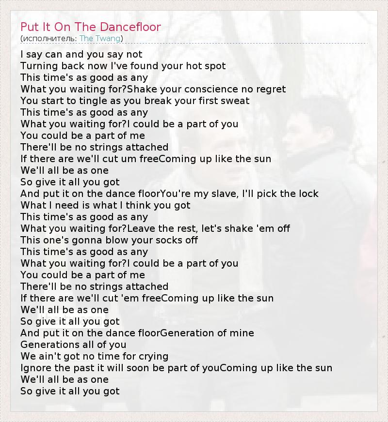 А как ты думаешь, о чем песня "Put It On The Dancefloor" ?
