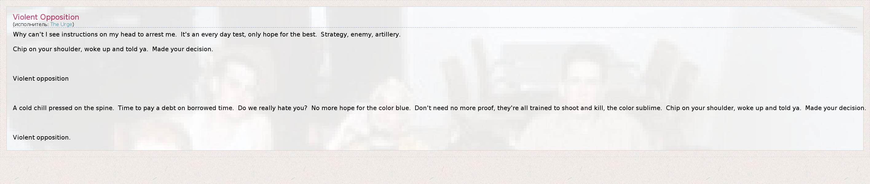 А как ты думаешь, о чем песня "Violent Opposition" ?