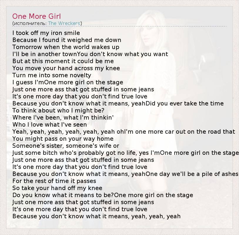 А как ты думаешь, о чем песня "One More Girl" ?