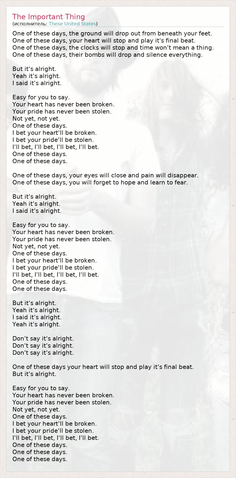 А как ты думаешь, о чем песня "The Important Thing" ?