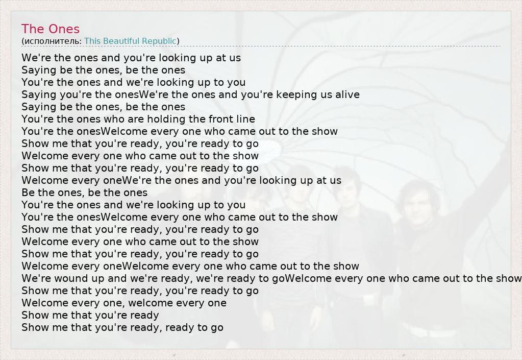 Это интересно:This Beautiful Republic - американская группа, исполняющая христианский рок (American Contemporary Christian Music (CCM)/Christian rock). Учасники группы собрались в городе Толедо, штат Огайо в 2004 году. Нынешний фронтмэн - Олин - присоеденился к группе, когда они потеряли предыдушего вокалиста. Все учасники этой молодой группы вместе учлись в Толедской Христианской Школе. В ноябре 2006-ого группа начала сотрудничать с ForeFront... продолжение