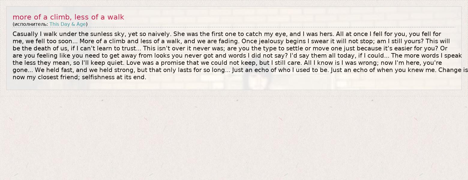 А как ты думаешь, о чем песня "more of a climb, less of a walk" ?