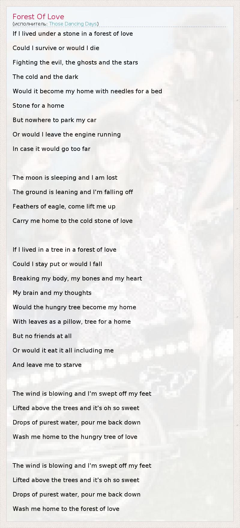 А как ты думаешь, о чем песня "Forest Of Love" ?