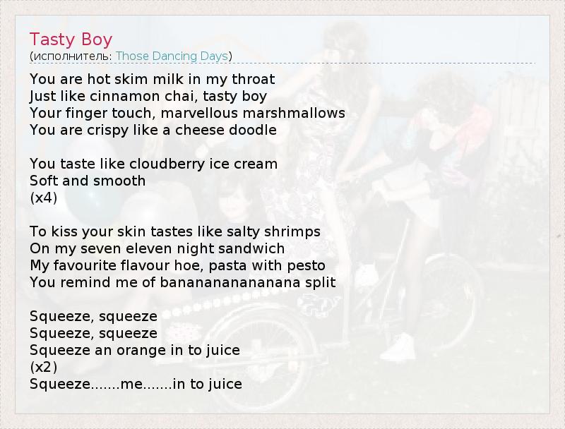 А как ты думаешь, о чем песня "Tasty Boy" ?