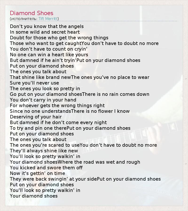 А как ты думаешь, о чем песня "Diamond Shoes" ?