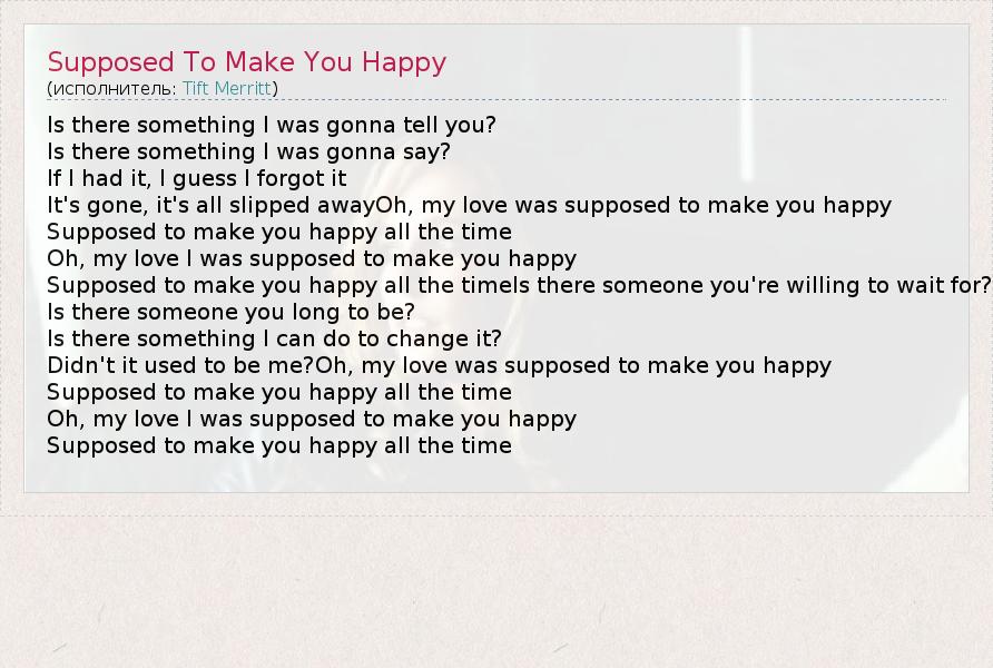 А как ты думаешь, о чем песня "Supposed To Make You Happy" ?