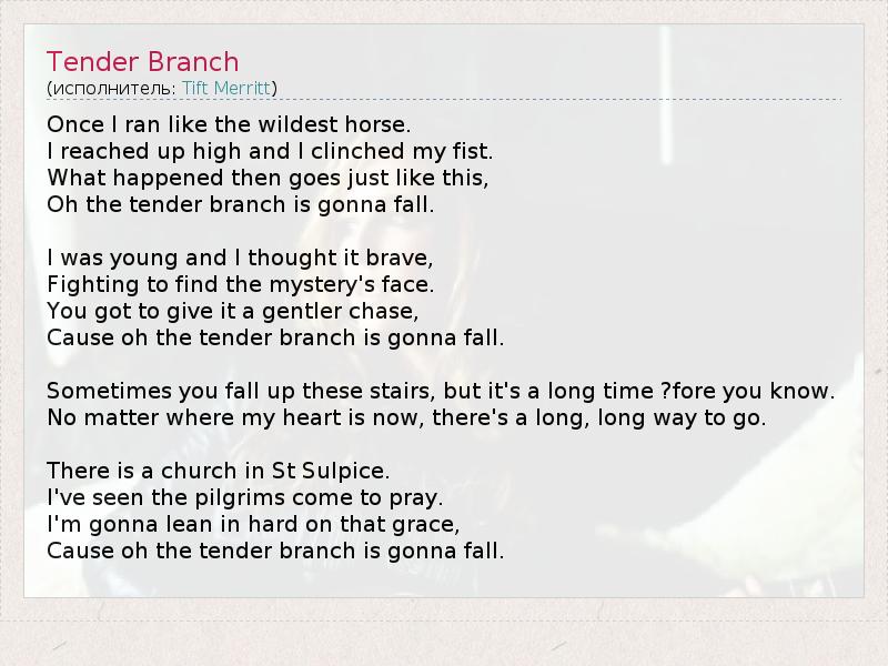 А как ты думаешь, о чем песня "Tender Branch" ?