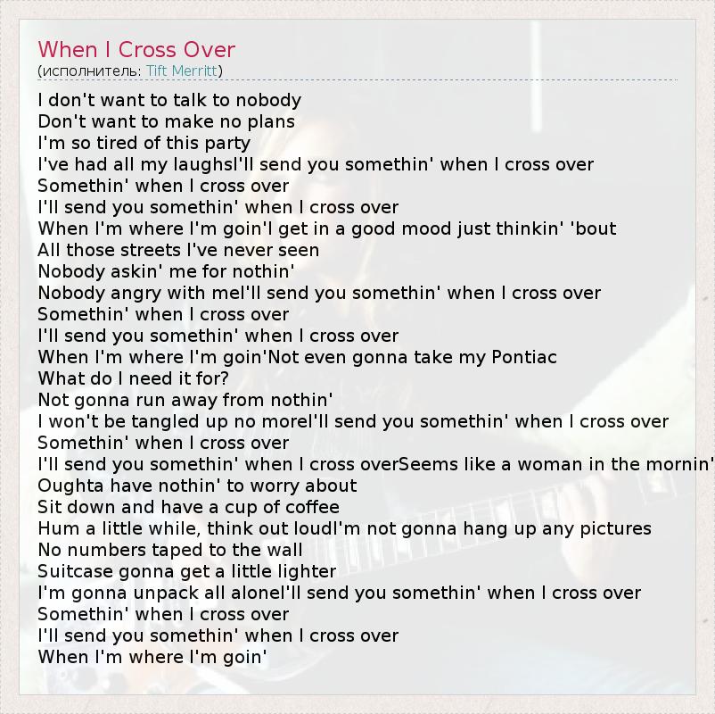 А как ты думаешь, о чем песня "When I Cross Over" ?