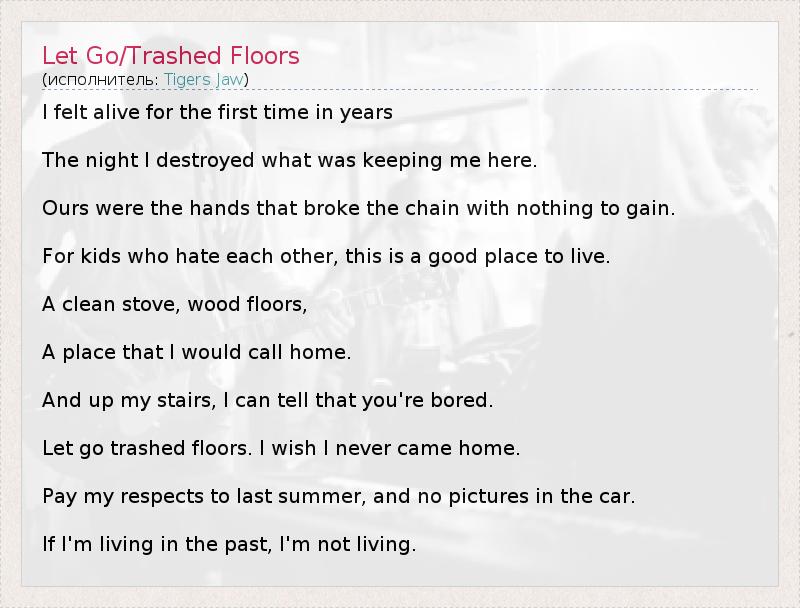 А как ты думаешь, о чем песня "Let Go/Trashed Floors" ?