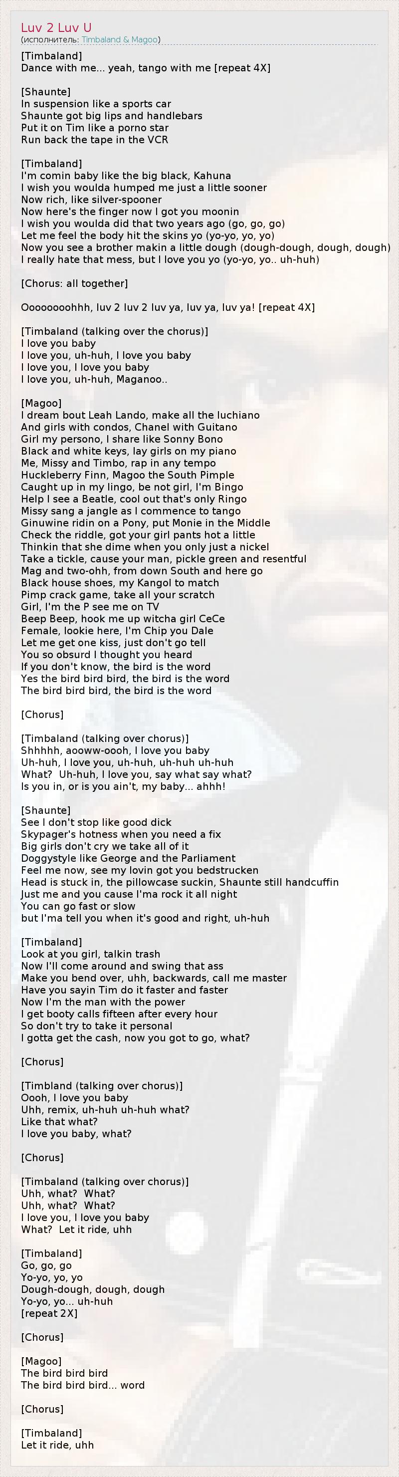 А как ты думаешь, о чем песня "Luv 2 Luv U" ?