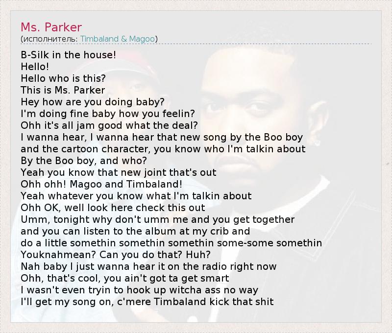А как ты думаешь, о чем песня "Ms. Parker" ?