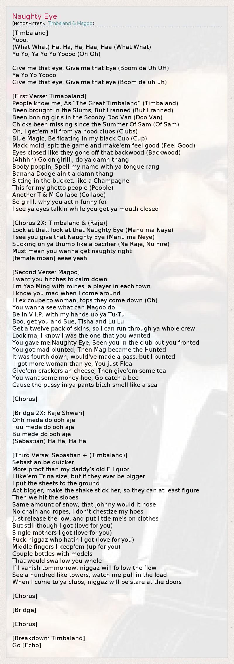А как ты думаешь, о чем песня "Naughty Eye" ?