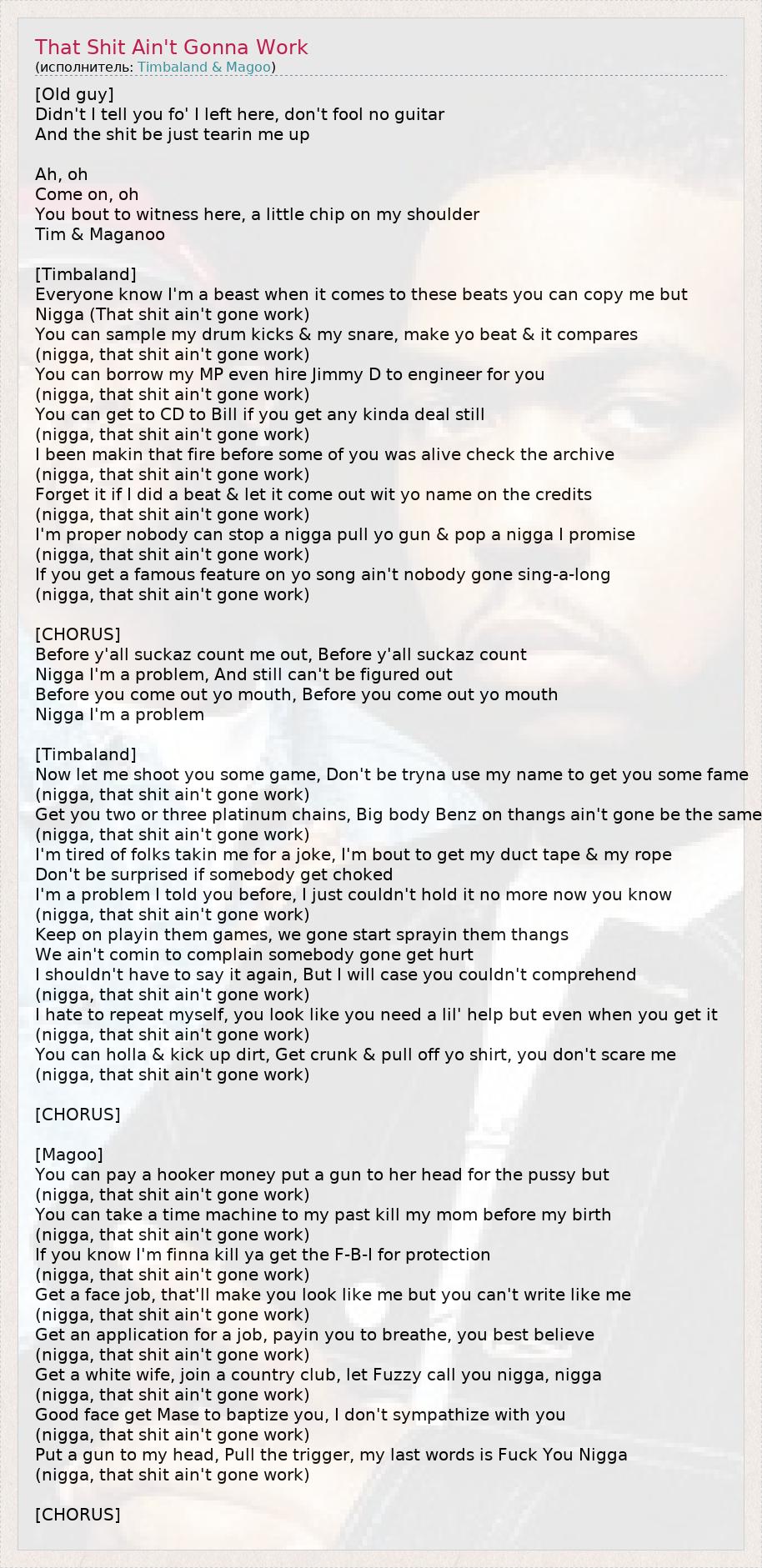 А как ты думаешь, о чем песня "That Shit Ain't Gonna Work" ?