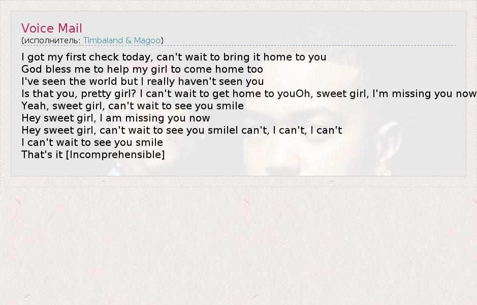 А как ты думаешь, о чем песня "Voice Mail" ?
