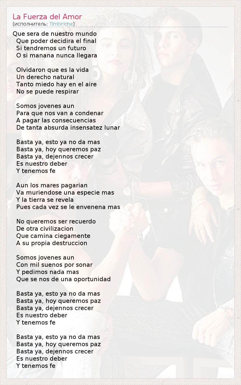 А как ты думаешь, о чем песня "La Fuerza del Amor" ?