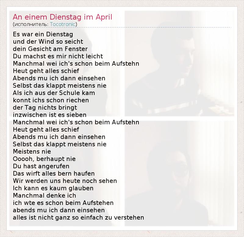 А как ты думаешь, о чем песня "An einem Dienstag im April" ?