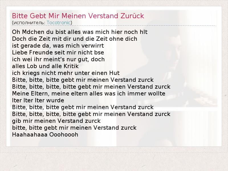 А как ты думаешь, о чем песня "Bitte Gebt Mir Meinen Verstand Zurück" ?