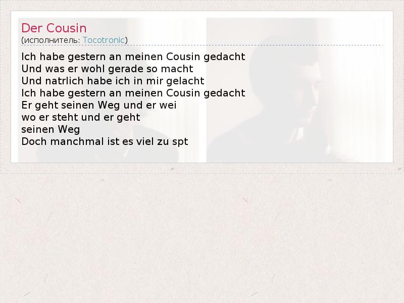 А как ты думаешь, о чем песня "Der Cousin" ?