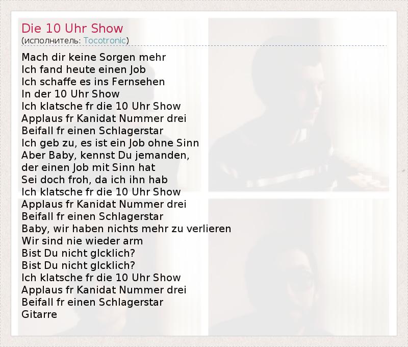 А как ты думаешь, о чем песня "Die 10 Uhr Show" ?