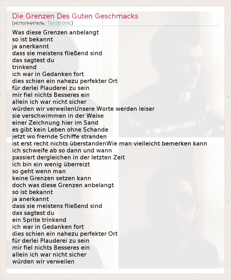 А как ты думаешь, о чем песня "Die Grenzen Des Guten Geschmacks" ?
