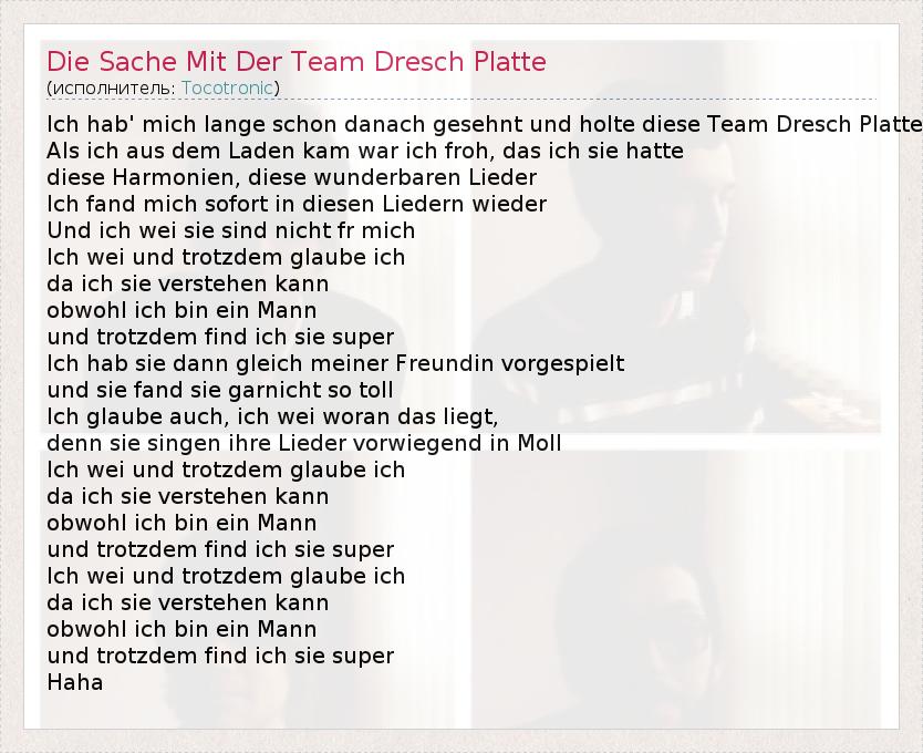 А как ты думаешь, о чем песня "Die Sache Mit Der Team Dresch Platte" ?
