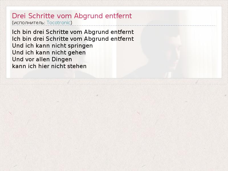 А как ты думаешь, о чем песня "Drei Schritte vom Abgrund entfernt" ?