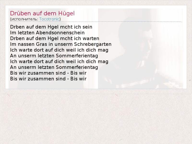 А как ты думаешь, о чем песня "Drüben auf dem Hügel" ?