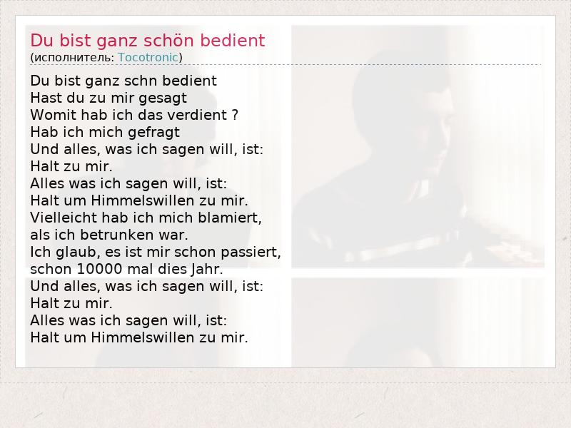 А как ты думаешь, о чем песня "Du bist ganz schön bedient" ?