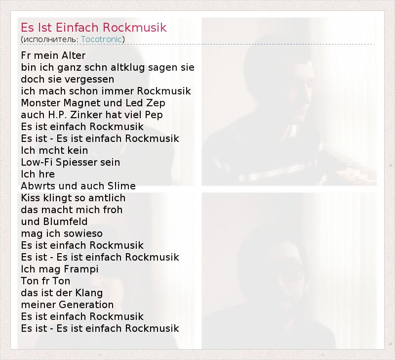 А как ты думаешь, о чем песня "Es Ist Einfach Rockmusik" ?