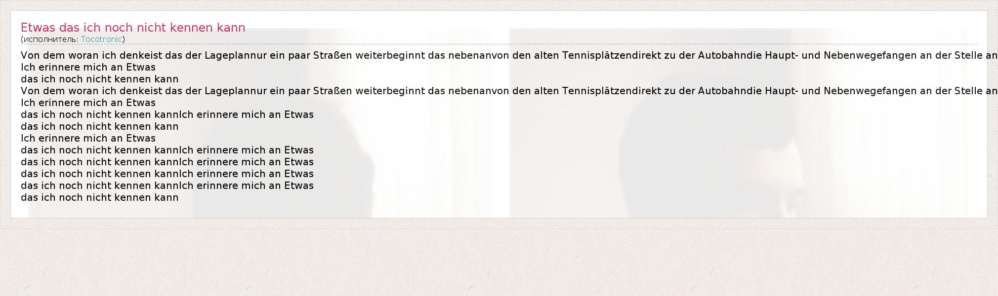 ГлавнаяИсполнителиTocotronicEtwas das ich noch nicht kennen kann