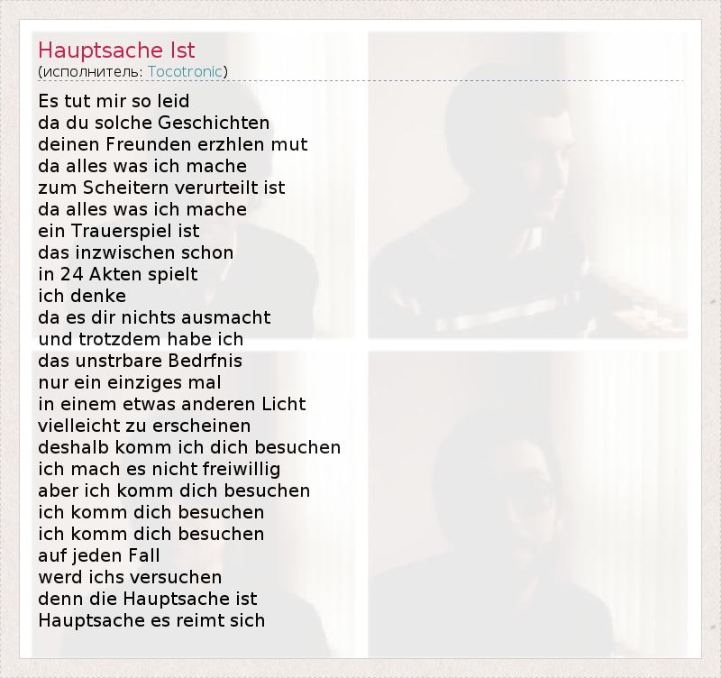 А как ты думаешь, о чем песня "Hauptsache Ist" ?