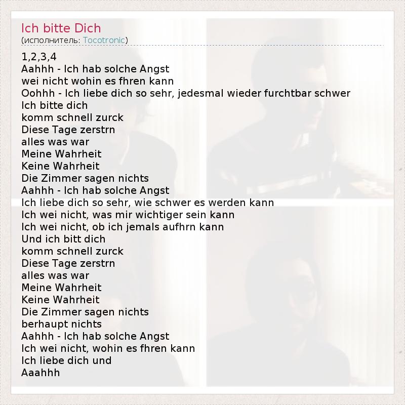 А как ты думаешь, о чем песня "Ich bitte Dich" ?