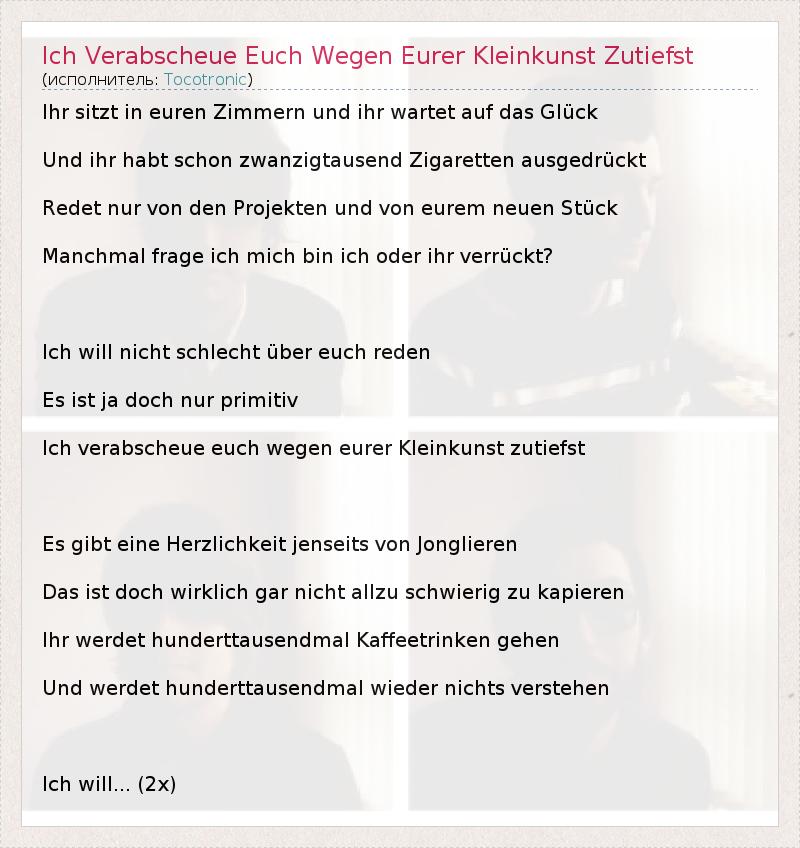 А как ты думаешь, о чем песня "Ich Verabscheue Euch Wegen Eurer Kleinkunst Zutiefst" ?