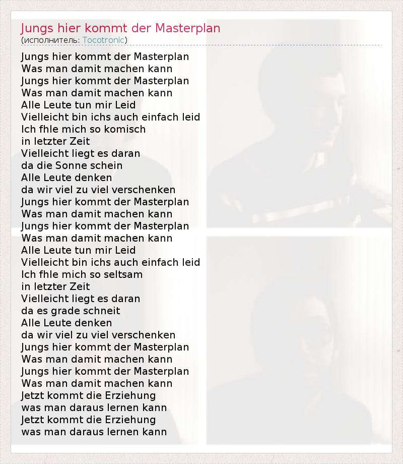 А как ты думаешь, о чем песня "Jungs hier kommt der Masterplan" ?