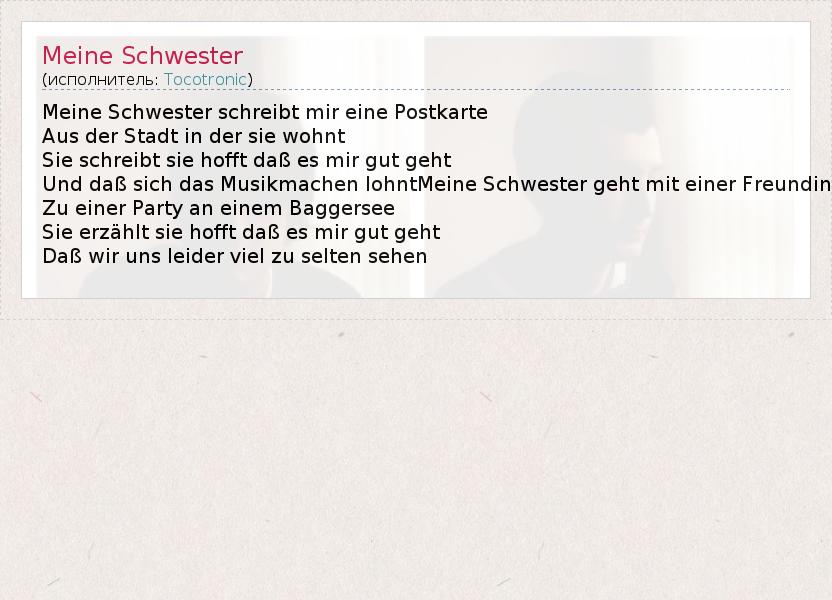 А как ты думаешь, о чем песня "Meine Schwester" ?