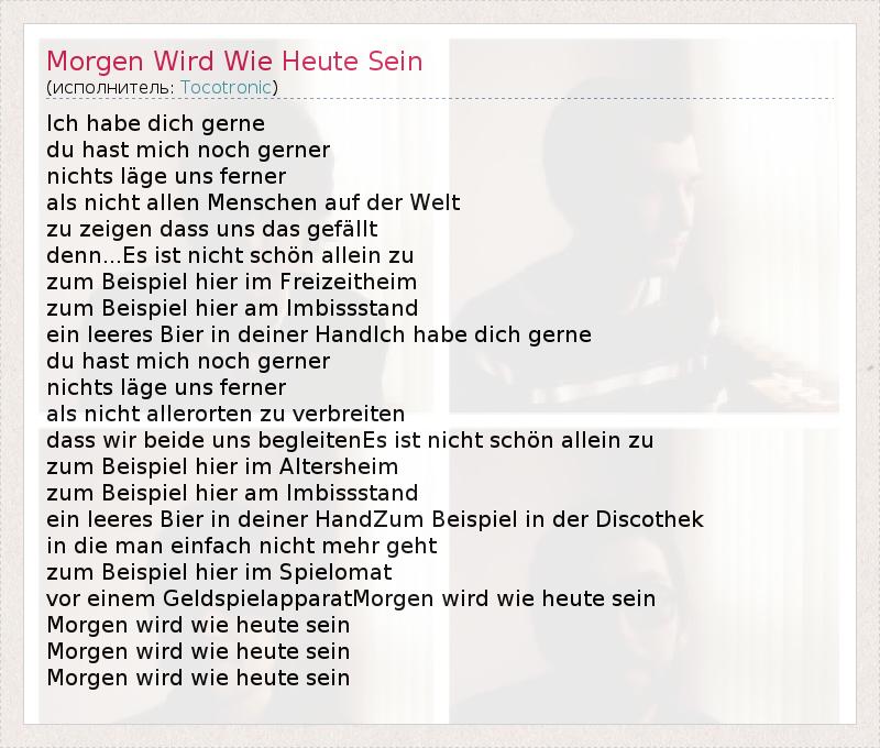 А как ты думаешь, о чем песня "Morgen Wird Wie Heute Sein" ?