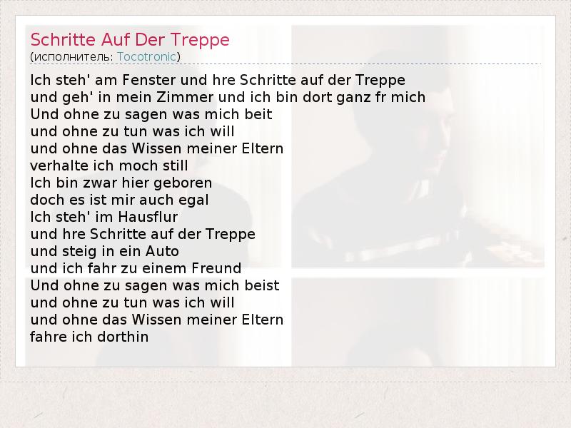 А как ты думаешь, о чем песня "Schritte Auf Der Treppe" ?