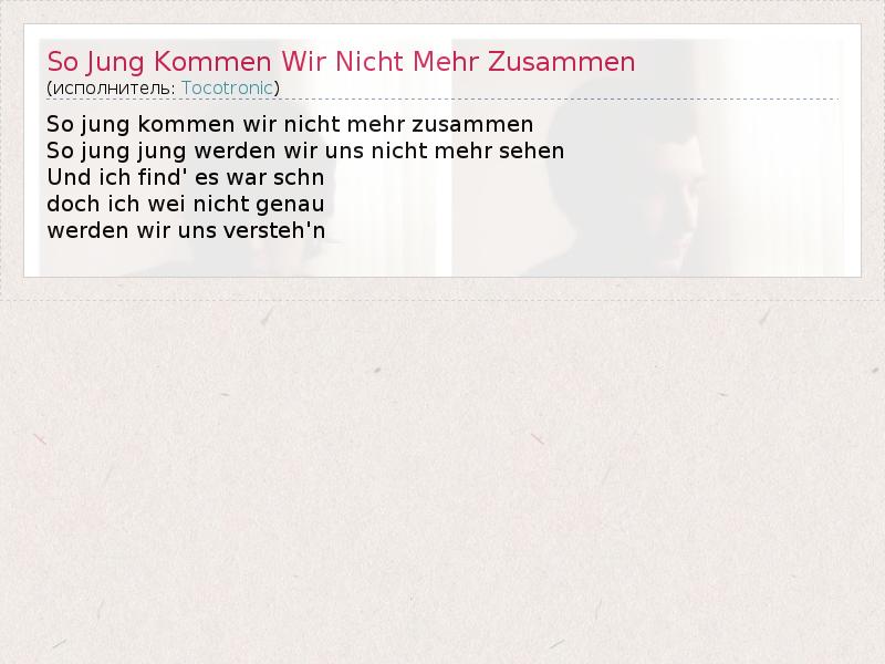 So Jung Kommen Wir Nicht Mehr Zusammen