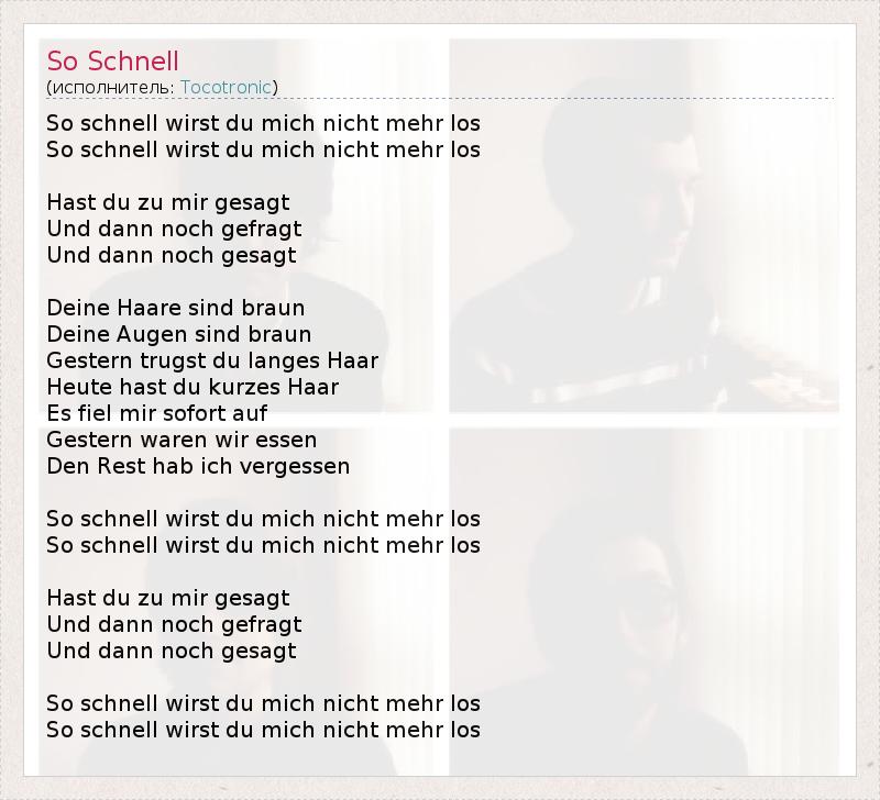 А как ты думаешь, о чем песня "So Schnell" ?