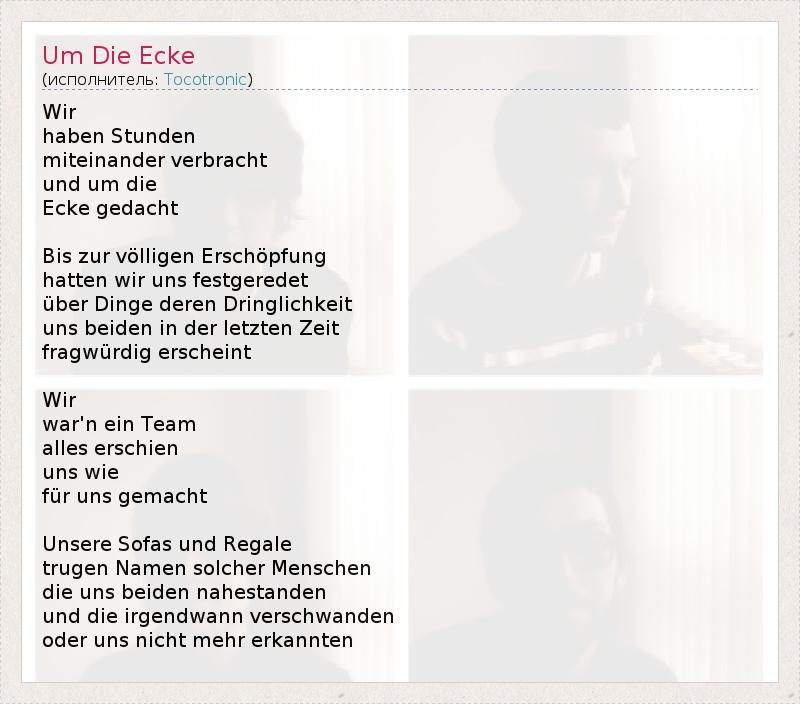 А как ты думаешь, о чем песня "Um Die Ecke" ?