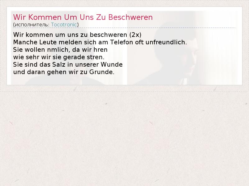 А как ты думаешь, о чем песня "Wir Kommen Um Uns Zu Beschweren" ?