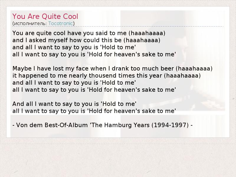 А как ты думаешь, о чем песня "You Are Quite Cool" ?