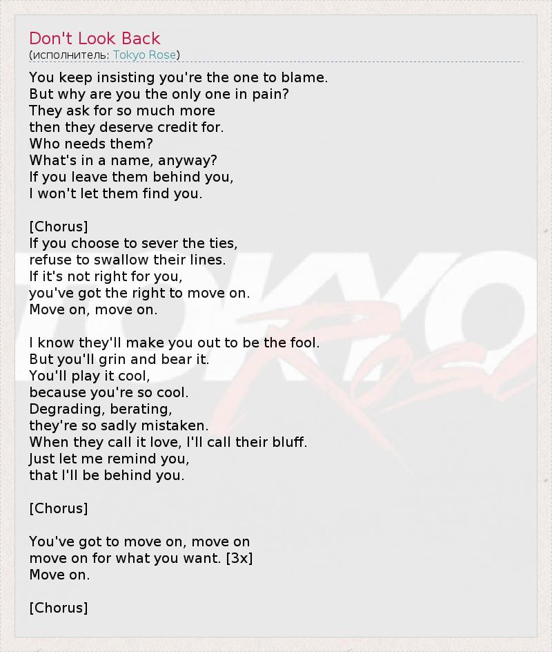 А как ты думаешь, о чем песня "Don't Look Back" ?
