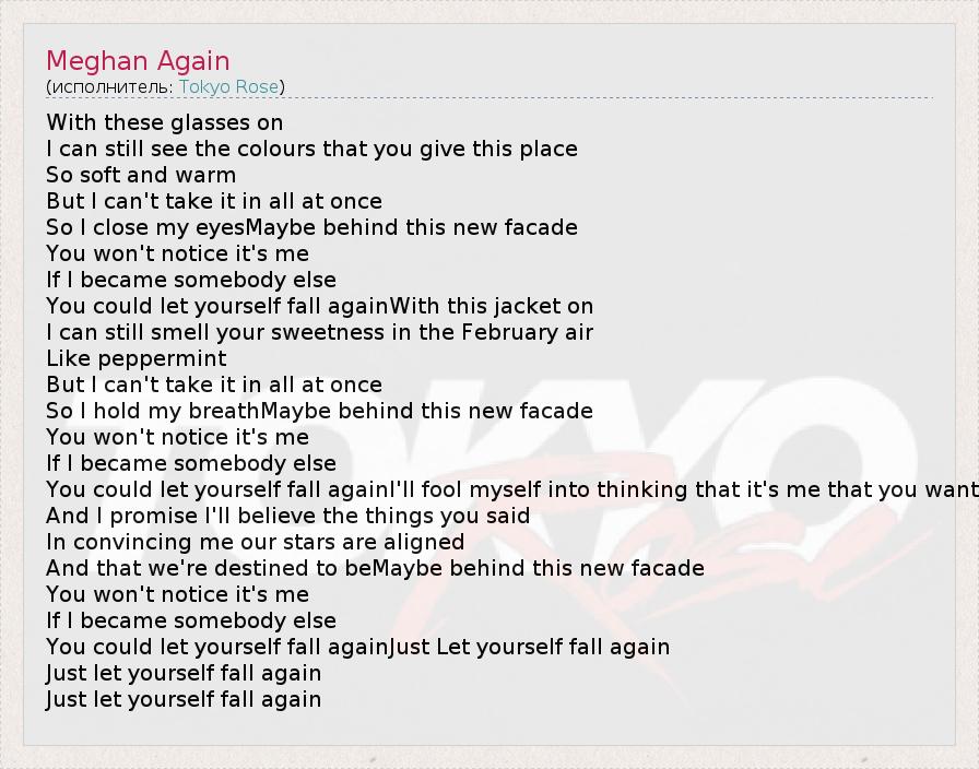 А как ты думаешь, о чем песня "Meghan Again" ?