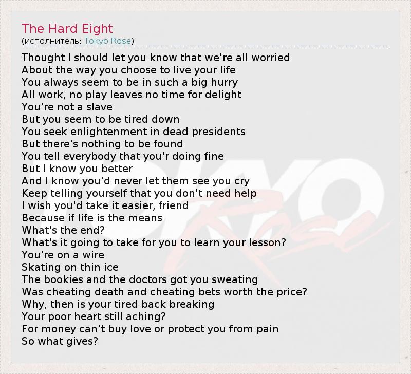 А как ты думаешь, о чем песня "The Hard Eight" ?